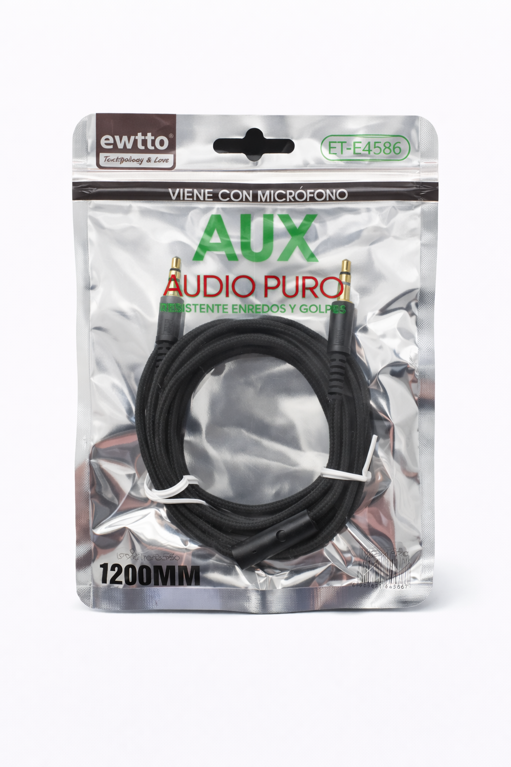 Conectá tus dispositivos de forma rápida y segura con el cable AUX ewttto, diseñado con recubrimiento trenzado para mayor resistencia y calidad de sonido puro. Viene sellado en su empaque original y listo para usar.