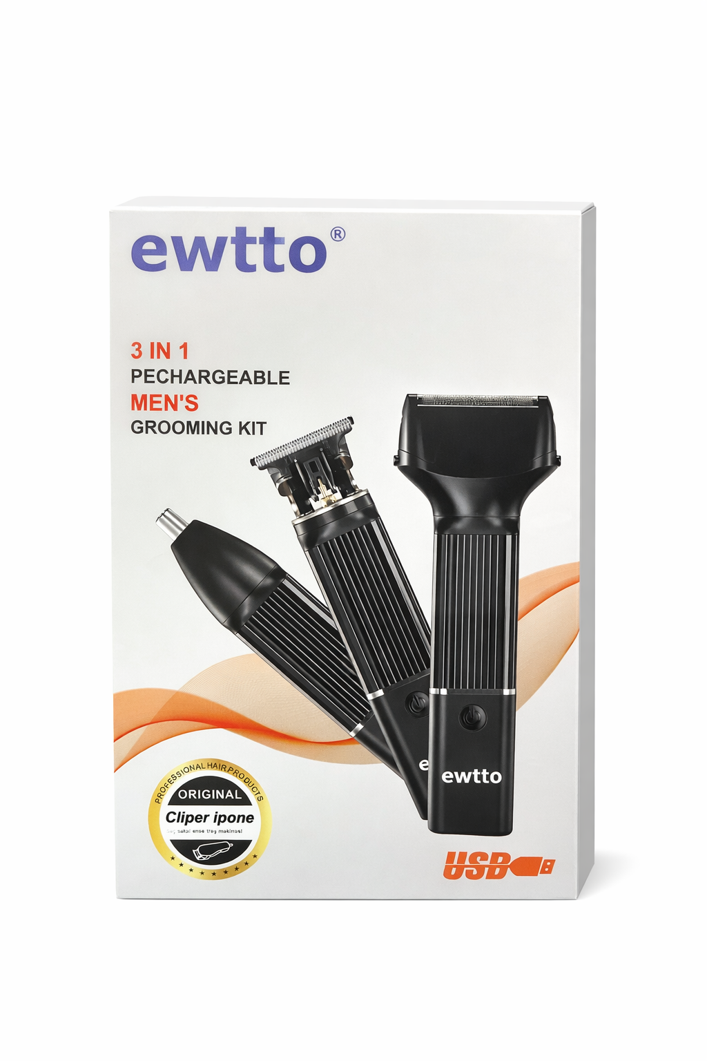 Kit de Grooming Masculino 3 en 1 EWTTO – Recargable USB