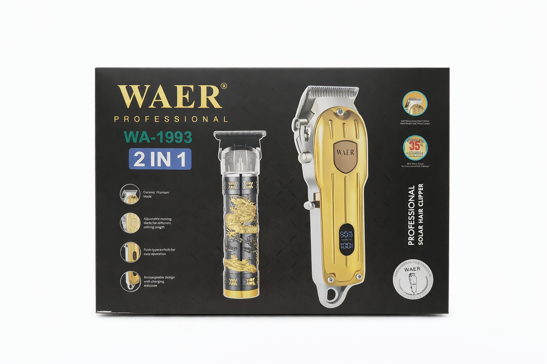 Potencia, precisión y diseño premium en un solo combo. El WAER WA-1993 2 en 1 está pensado para barberos y uso personal exigente, combinando una máquina profesional y una patillera tipo T para acabados perfectos.