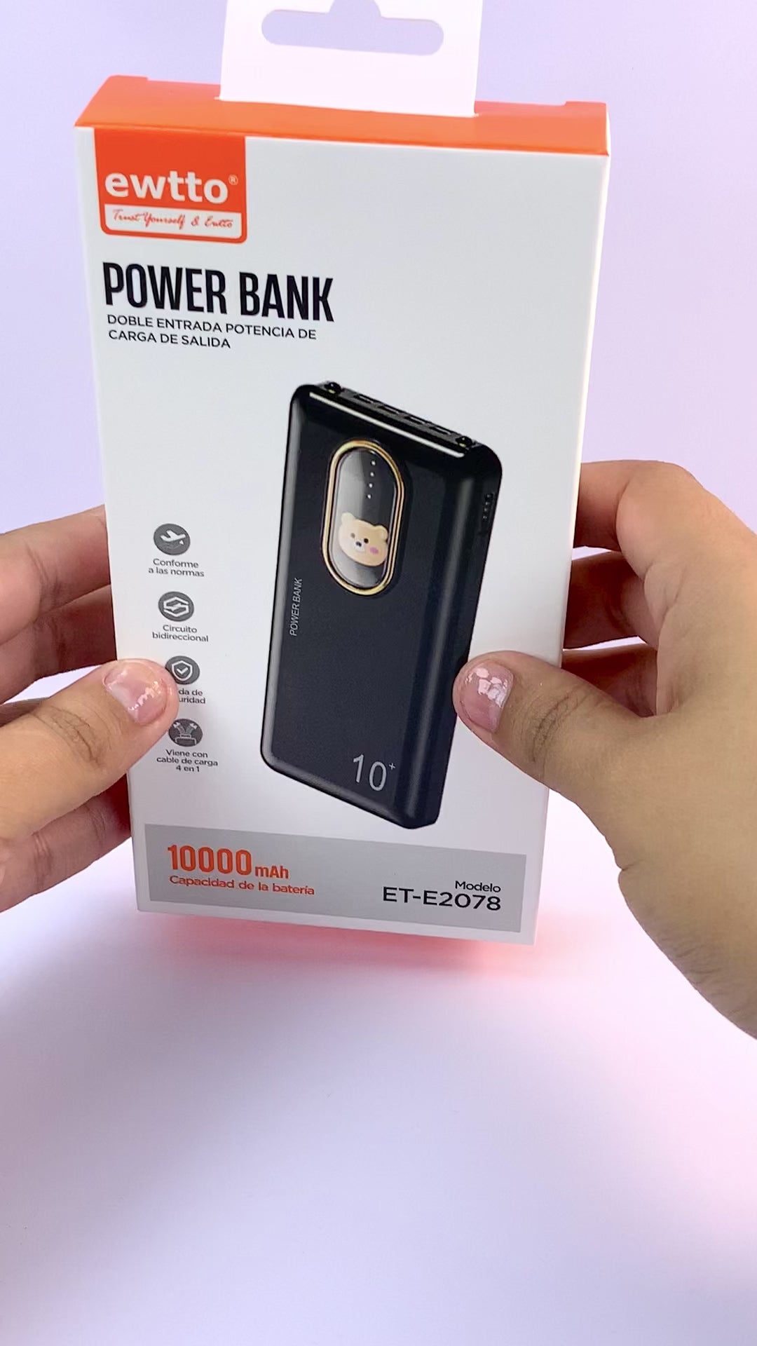 Mantén tus dispositivos siempre cargados con este power bank EWTTO de 10,000 mAh, ideal para el día a día, viajes o emergencias. Su diseño compacto y elegante lo hace fácil de llevar a cualquier lugar, sin sacrificar potencia ni seguridad.